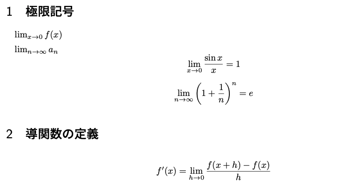 - 高度な記号:総和、積分、極限