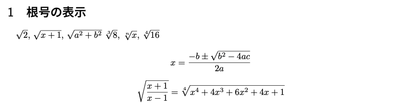 \section{根号の表示}