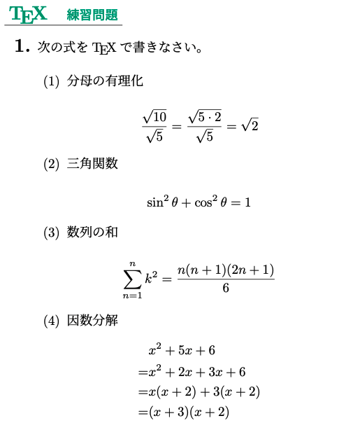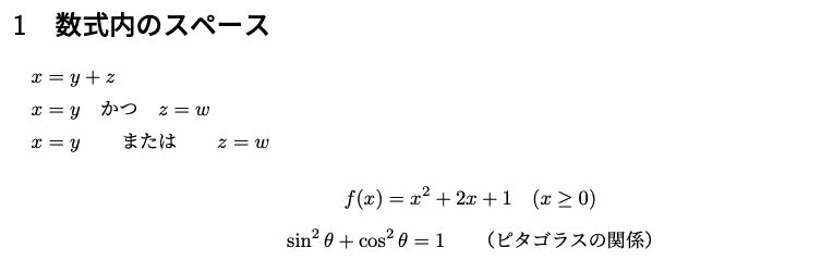 重要:今後の数式例では、常にamsmathパッケージが読み込まれているものとします。
