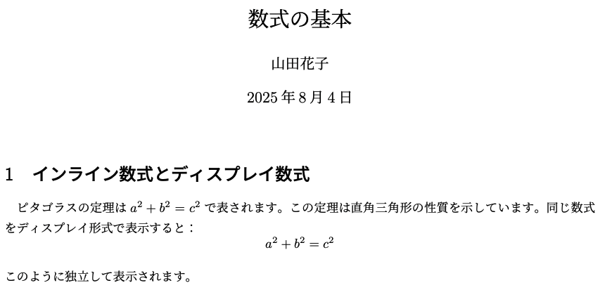 - インライン数式とディスプレイ数式の使い分けができる