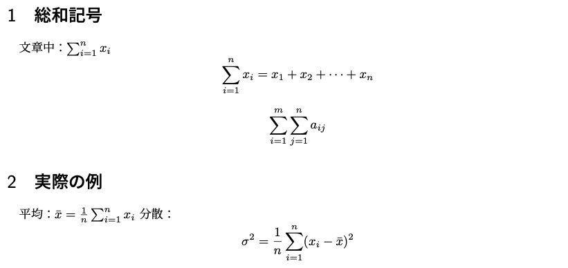 - 分数、平方根、総和記号、上付き文字を正しく使用